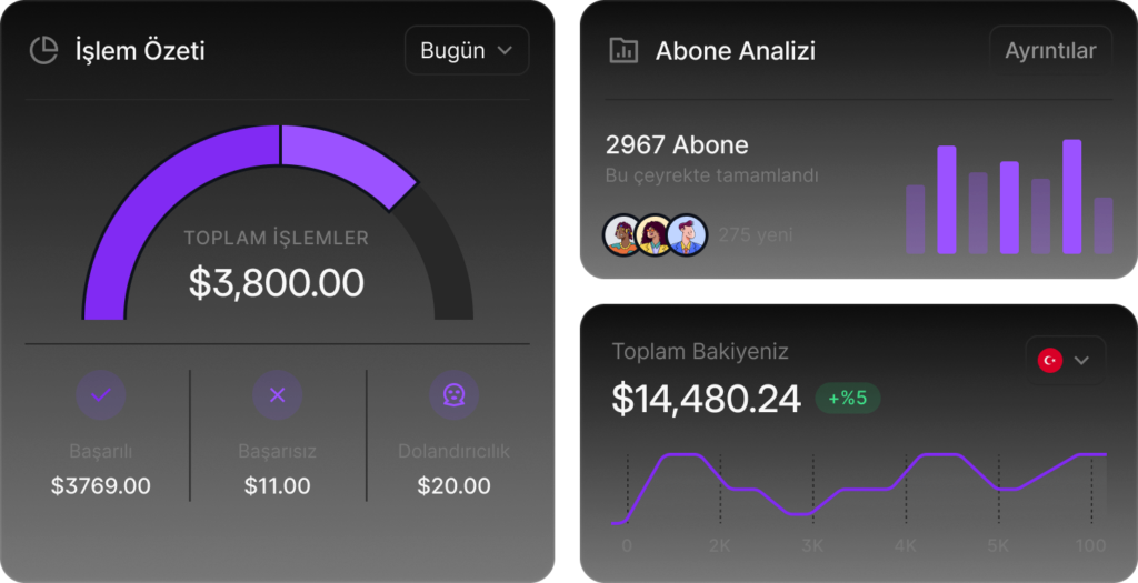 Online ve fiziksel ödeme almak isteyen tüm e-ticaret işletmeleri, ödeme ve e-para kuruluşları, sigorta firmaları, araç kiralama platformları, şarj istasyonları, SaaS platformları, abonelik hizmetleri, pazaryeri modellerii ve daha birçok sektöre özel çözümler sunuyoruz. İşletmenizin ihtiyaçlarına uygun çözümler geliştirmek için bizimle iletişime geçebilirsiniz.
